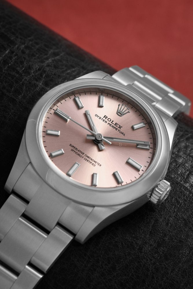 Rolex doesn’t release sales numbers, but the Oyster Perpetual 31 is quite likely the hottest ladies’ Rolex in the current lineup. In total, the Oyster Perpetual is available in five sizes–28, 31, 34, 36, and 41–and four out of the five would be perfectly suitable for most women.