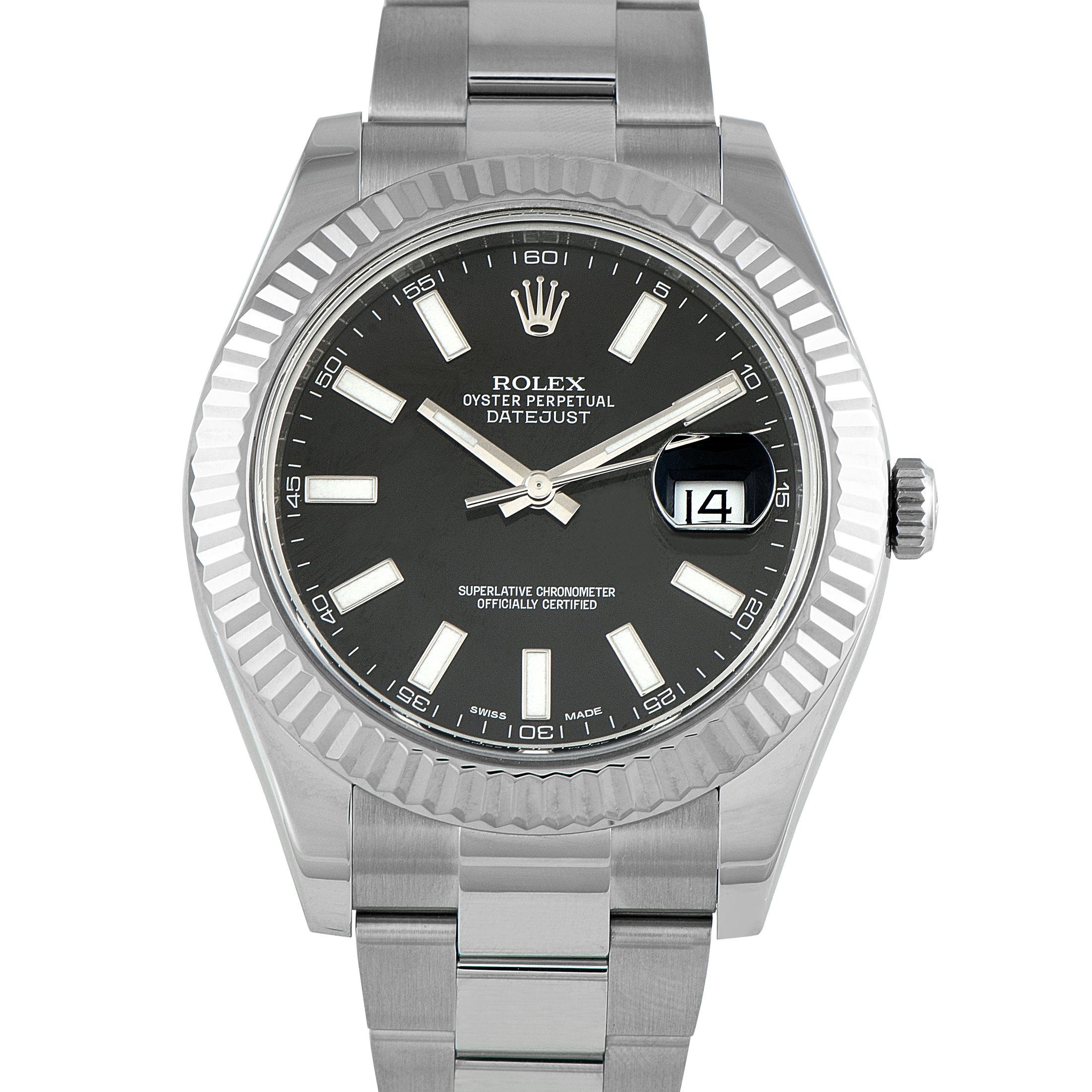 - Ref. 116300, 116334, 116333 (These “Datejust II” models appeared in 2009 with 41mm diameters, shiny lugs, chunky bezels, and Oyster bracelets)