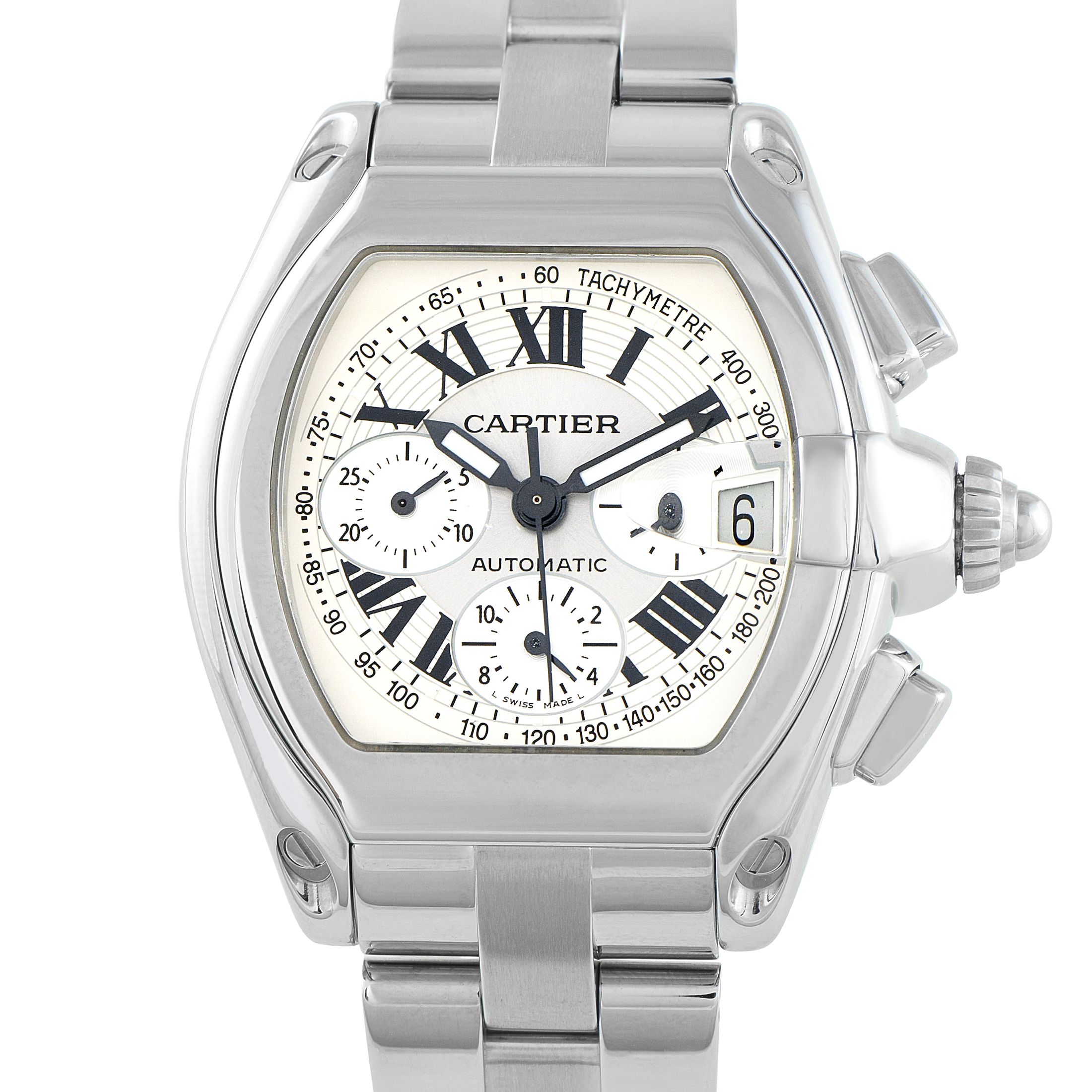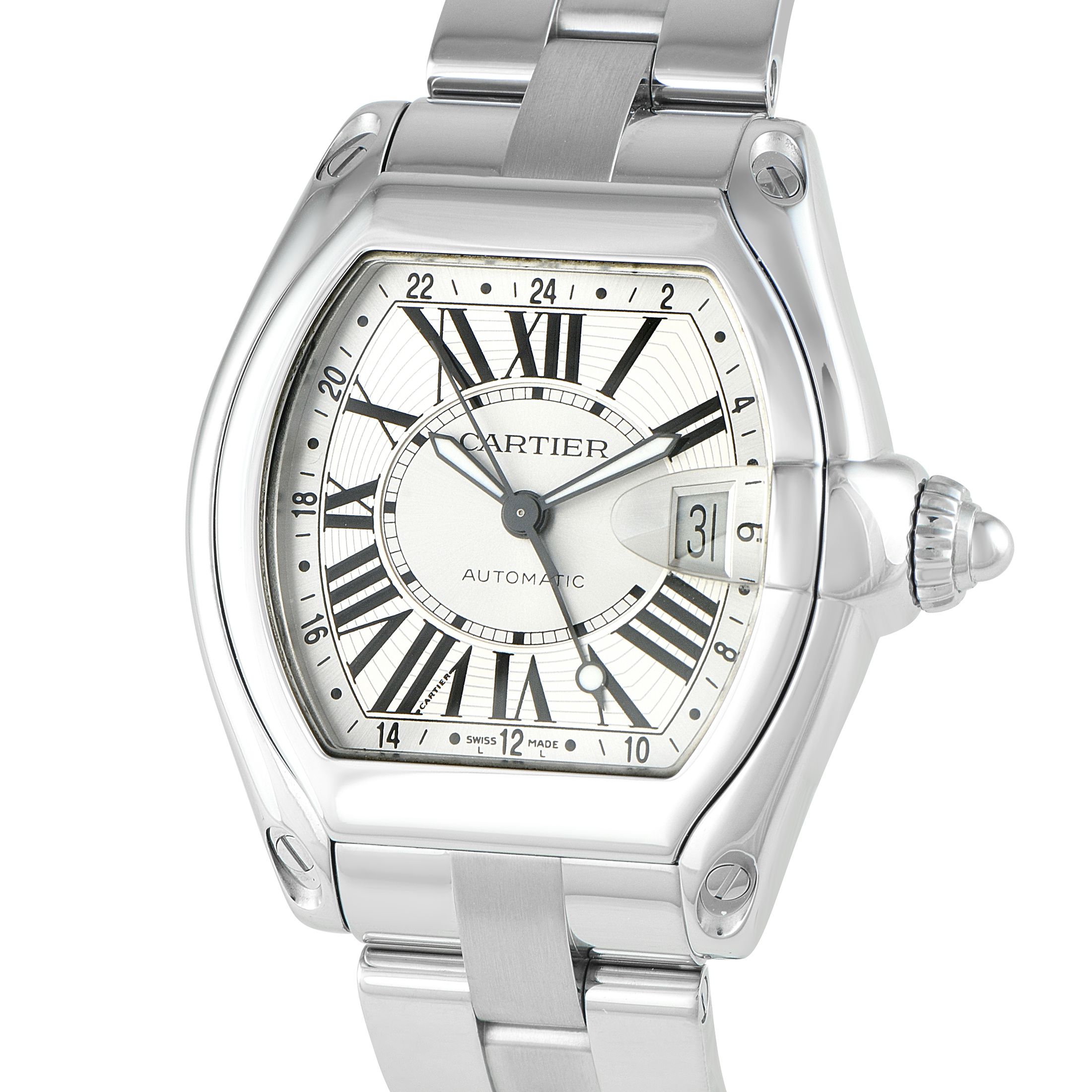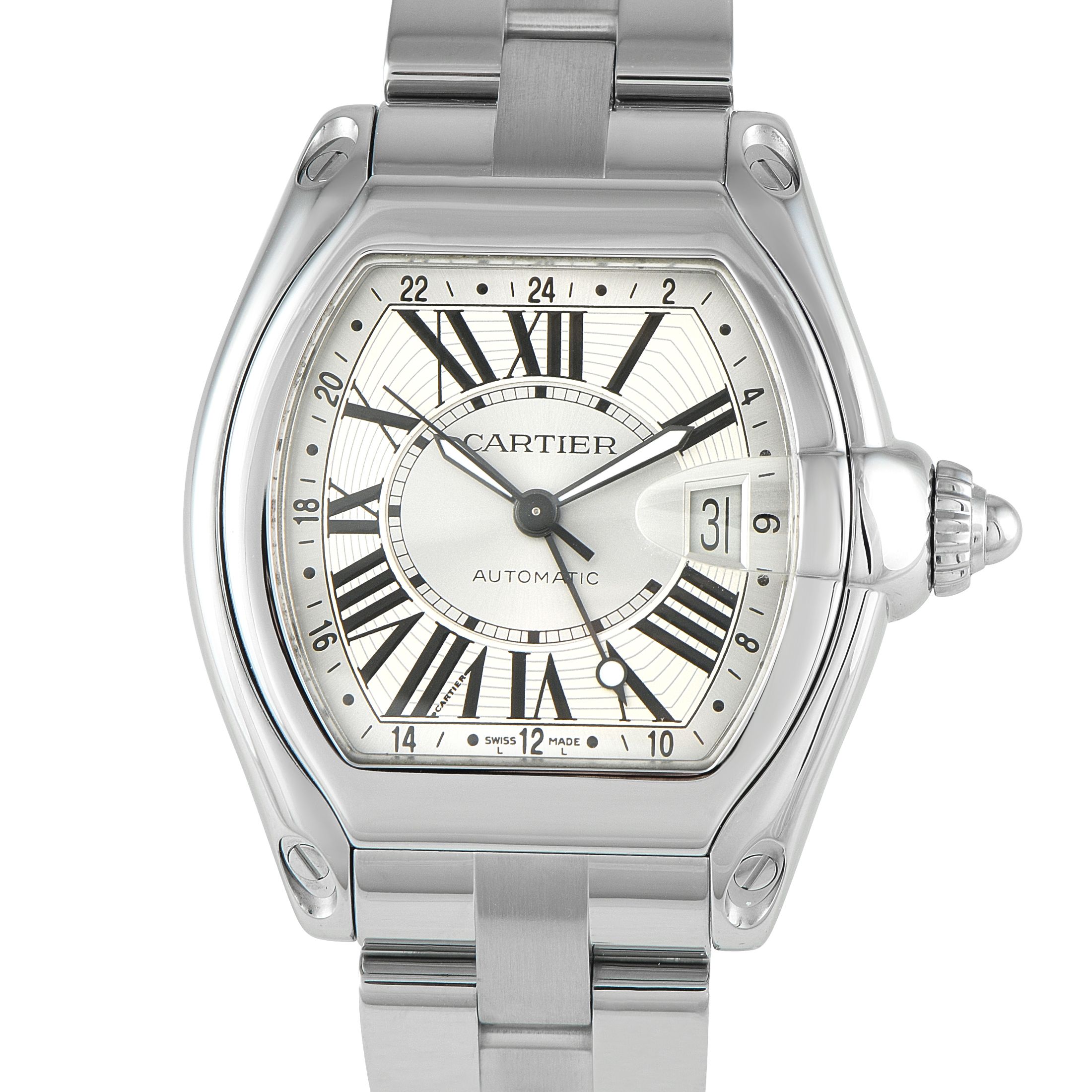 Cartier made several variations of the Roadster watch during its production run, including time and date, chronograph, and GMT models.