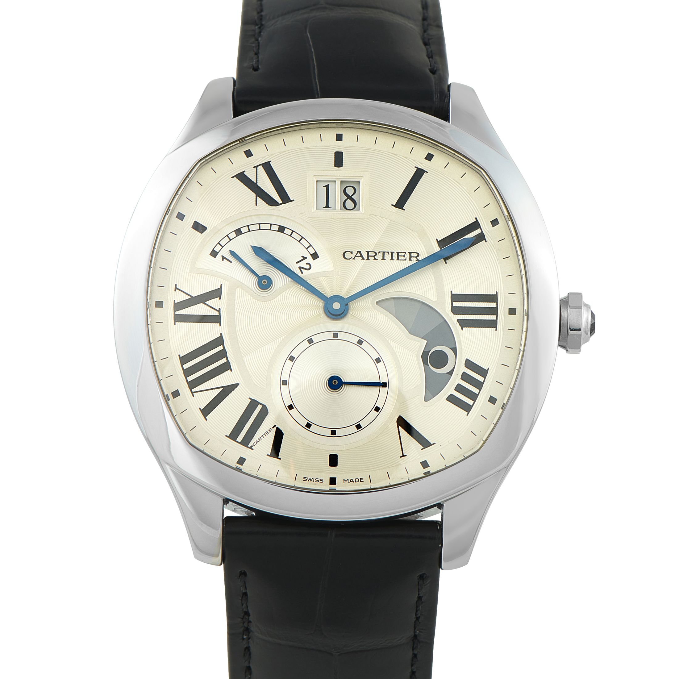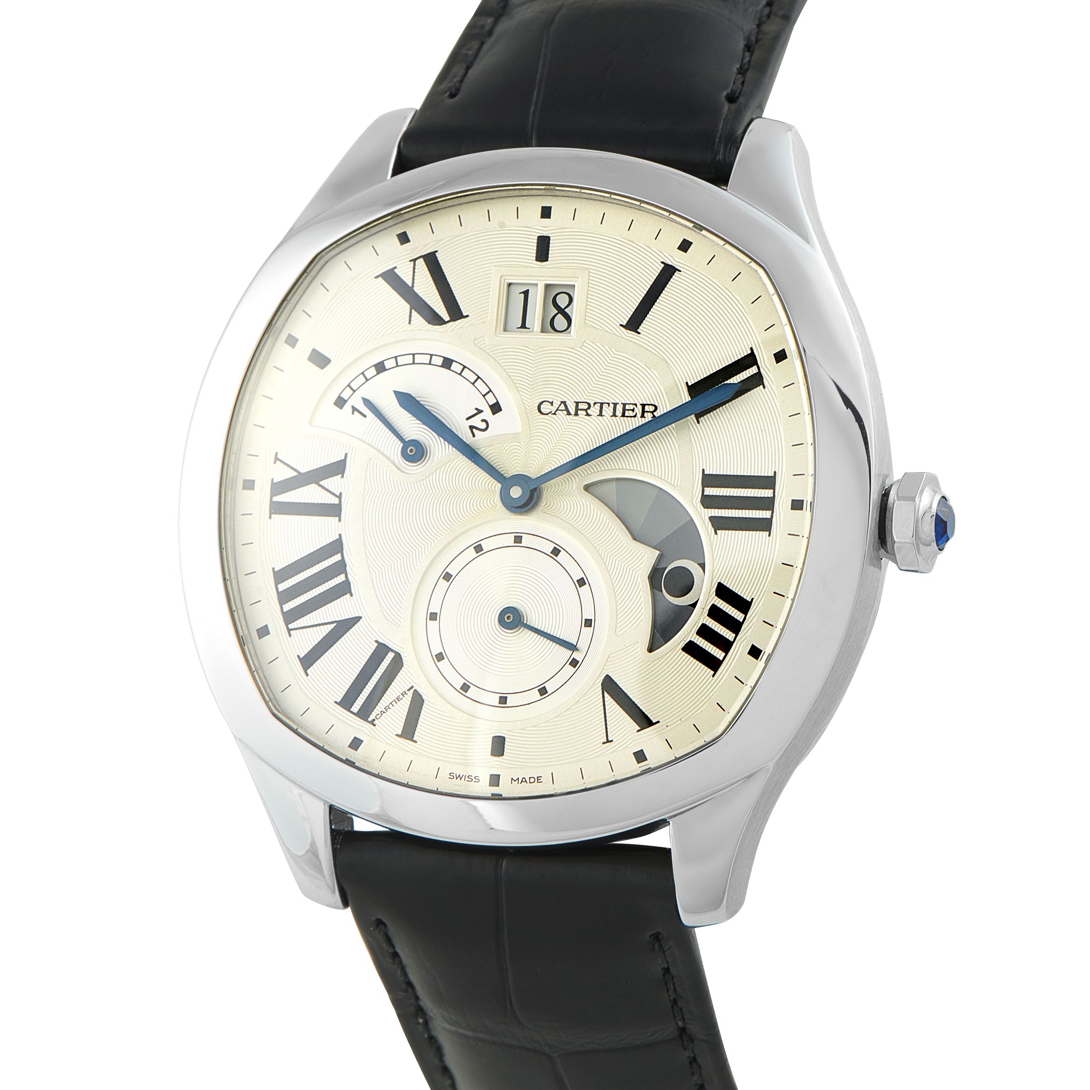 A touch sporty but entirely elegant, the Drive is available in a few versions including time and date, extra-thin, moon phase, dual time, and tourbillon. Irrespective of the complication of the watch, the Drive watches run on in-house Cartier movements.